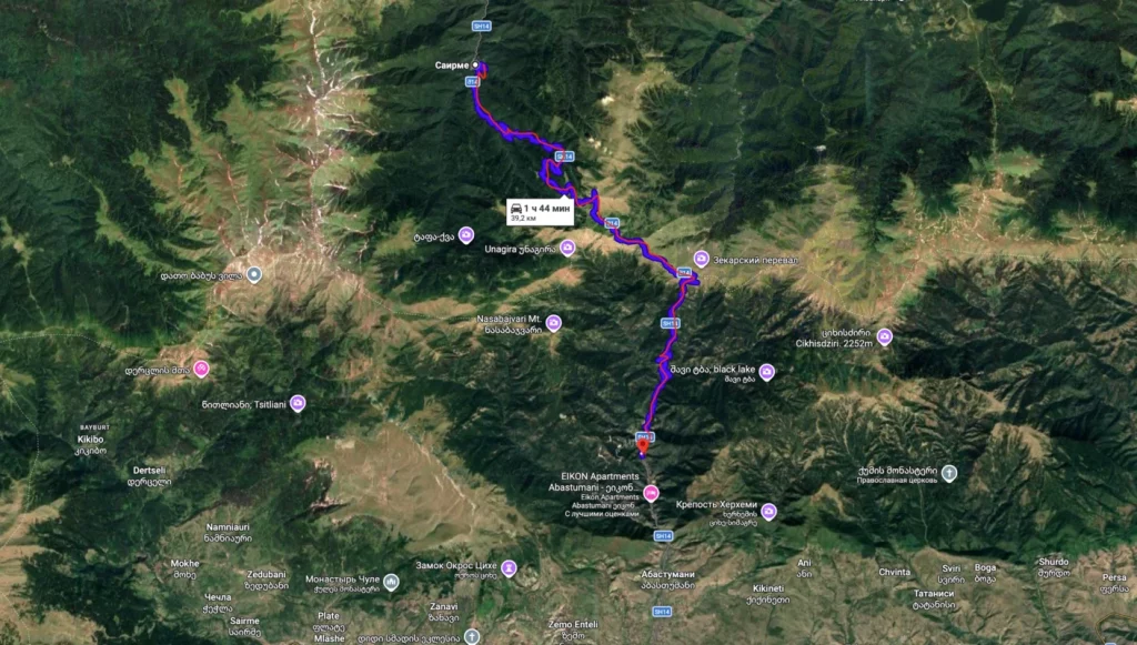 Маршрут, соединяющий курорт Сайрме (Имеретия) с посёлком Абастумани (Самцхе-Джавахети), славится красотой. Туристы, отдыхающие на горячих источниках Сайрме, иногда хотят срезать путь к Абастумани через одноимённый перевал (Зекарский перевал). Но мы не выдадим автомобиль под эту авантюру. Причина: дорога Сайрме – Абастумани – узкая горная грунтовка с крутейшими поворотами и постоянным набором высоты. Там нет покрытия, только щебень и грунт, часто бывают камнепады. Ехать по ней непредсказуемо и опасно, особенно если нет навыков управления машиной на скользком или неровном покрытии. Одно неловкое движение – и вы можете оказаться на краю обрыва или пробить колесо о торчащий камень. Страховка на перевале Зекари не действует, а вызвать подмогу туда практически нереально. В тёмное время суток тем более делать там нечего – ни освещения, ни связи. Поэтому дорога Сайрме – Абастумани внесена в список запрещённых маршрутов. Чтобы попасть из Сайрме в Абастумани, придётся возвращаться на основную трассу (через Багдати – Кутаиси – Хашури или объездными региональными дорогами). Да, круг получается больше, зато ваш автомобиль останется цел и невредим. Поверьте, лишние 100 км по нормальному шоссе куда лучше, чем час тряски по краю обрыва без гарантий доехать.